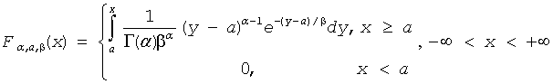 The vRngGamma function generates random numbers with gamma distribution that has shape parameter α, displacement a, and scale parameter β, where α, β, and a∈R ; α > 0, β > 0.