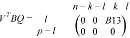 where the k-by-k matrix A12 and l-by-l matrix B13 are nonsingular upper triangular; A23 is l-by-l upper triangular if m-k-l≥ 0, otherwise A23 is (m-k-by-l upper trapezoidal. k + l = the effective numerical rank of the (m + p)-by-n matrix (AT,BT)T for real flavors or (AH,BH)H for complex flavors.