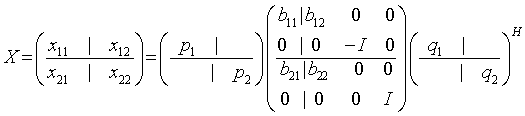- the columns of the lower triangle of x22(p+1:m-q,q+1:m-p) specify the last m-p-q reflectors for p2
