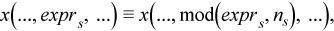 where the index arithmetic is performed modulo respective size, that is,