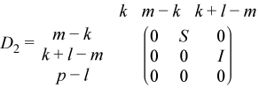 Let k+l = the effective numerical rank of the matrix (ATBT)T for real flavors or the matrix (AH,BH)H for complex flavors, then R is a (k + l)-by-(k + l) nonsingular upper triangular matrix, D1 and D2 are m-by-(k + l) and p-by-(k + l) "diagonal" matrices and of the following structures, respectively: