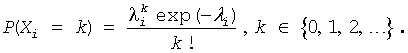 The vRngPoissonV function generates n Poisson distributed random numbers xi(i = 1, ..., n) with distribution parameter λi, where λiR; λi > 0.
