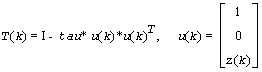 tau is a scalar and z(k) is an l-element vector. tau and z(k) are chosen to annihilate the elements of the k-th row of A2.