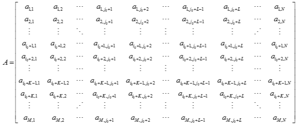 B is formed from rows with indices i0 + 1 to i0 + K and columns j0 + 1 to j0 + L of matrix A. To specify matrix B, LAPACK routines require four parameters: