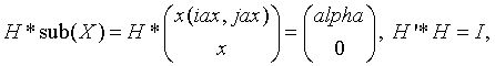 where alpha is a scalar (a real scalar - for complex flavors), and sub(X) is an (n-1)-element real/complex distributed vector X(ix:ix+n-2, jx) if incx = 1 and X(ix, jx:jx+n-2) if incx = m_x. H is represented in the form