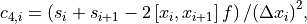 Coefficients of Hermite spline are calculated using the following formulas: