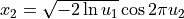 Generates normally distributed random number x thru the pair of uniformly distributed numbers u1 and u2 according to the formula: |
