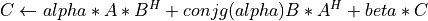 The her2k routines perform a rank-2k update of an n x n hermitian matrix C by general matrices A and B. The operation is defined as: