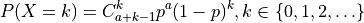 If the first distribution parameter a∈N, this distribution is the same as Pascal distribution. If a∈N, the distribution can be interpreted as the expected time of a-th success in a sequence of Bernoulli trials, when the probability of success is p.