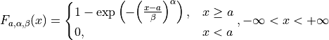 The oneapi::mkl::rng::weibull class object is used in the oneapi::mkl::rng::generate function to provide Weibull distributed random numbers with displacement a, scalefactor β, and shape , where