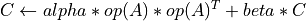 Output buffer overwritten by alpha * op(A) * op(A)T + beta * C.