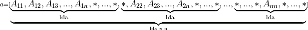 A general matrix A of m rows and n columns with leading dimension lda is represented as a one dimensional array a of size of at least lda * n if column major layout is used and at least lda*m if row major layout is used. Before entry in any BLAS function using a general matrix, the leading m by n part of the array a must contain the matrix A. For column (respectively, row) major layout, the elements of each column (respectively, row) are contiguous in memory while the elements of each row (respectively, column) are at distance lda from the same elements in the previous row (respectively, column).