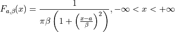 The cauchy class object is used in the generate function to provide Cauchy distributed random numbers with displacement (a) and scalefactor (b, β), where .