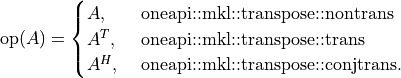 NOTE:Currently, the only supported case for operation is oneapi::mkl::transpose::nontrans. - alpha