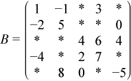 The matrix B can be considered to be symmetrically structured with 15 non-zero elements and represented as: