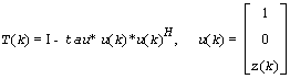 tau is a scalar and z(k) is an l-element vector. tau and z(k) are chosen to annihilate the elements of the k-th row of A2.