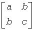 The elements a, b, and c of the 2-by-2 matrix above.