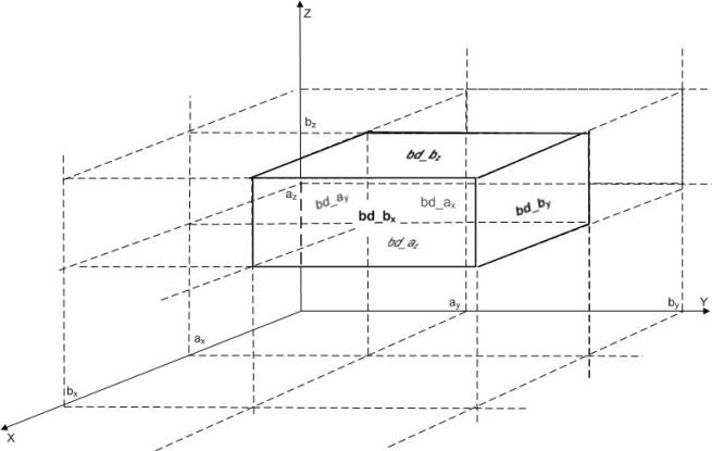 bd_ay = {ax ≤ x ≤ bx, y = ay, az ≤ z ≤ bz}, bd_by = {ax ≤ x ≤ bx, y = by, az ≤ z ≤ bz},