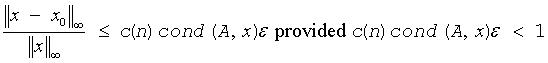 where cond(A,x)= || |A-1||A| |x| ||∞ / ||x||∞≤ ||A-1||∞ ||A||∞ = κ∞(A).
