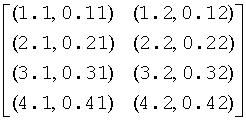 Suppose A (1:5, 1:4) is the complex two-dimensional array presented by matrix
