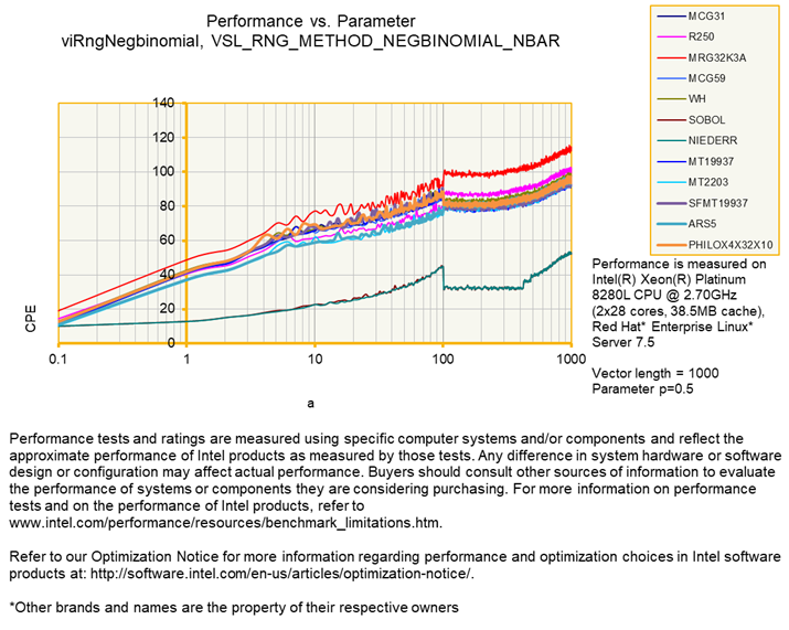 Intel® oneAPI Math Kernel Library Vector Statistics Random Number Generator Performance Data