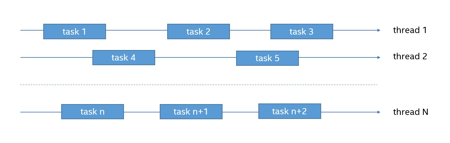 oneTBB enables you to simplify parallel programming by breaking computation into parallel running tasks. Within a single process, parallelism is carried out by mapping tasks to threads. Threads are an operating system mechanism that allows the same or different sets of instructions to be executed simultaneously. Using threads can make your program work faster and more efficiently.
