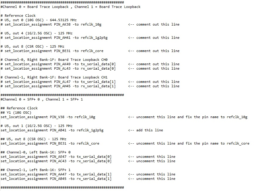 In order to use SFP+, modify altera_eth_top.qsf file with the following setting: