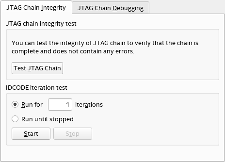 Use the JTAG Chain Integrity tab to check the JTAG chain for potential failure, which can be caused by either a short circuit or an open JTAG circuit.