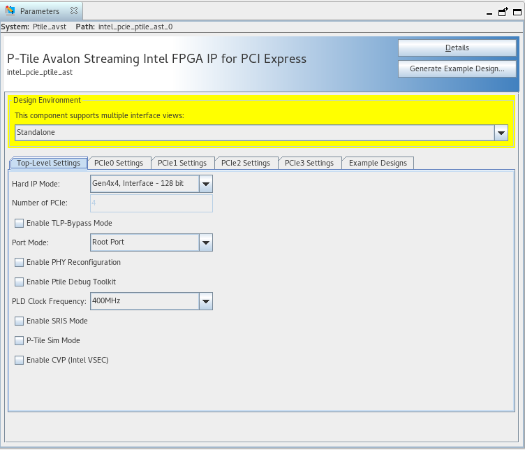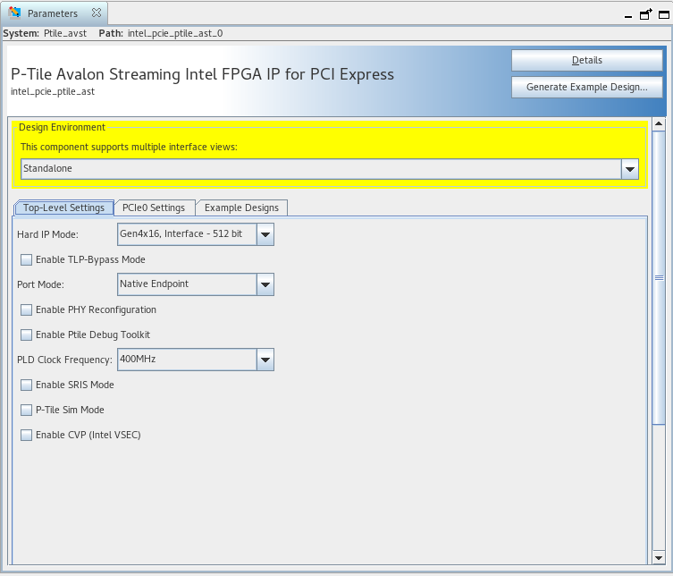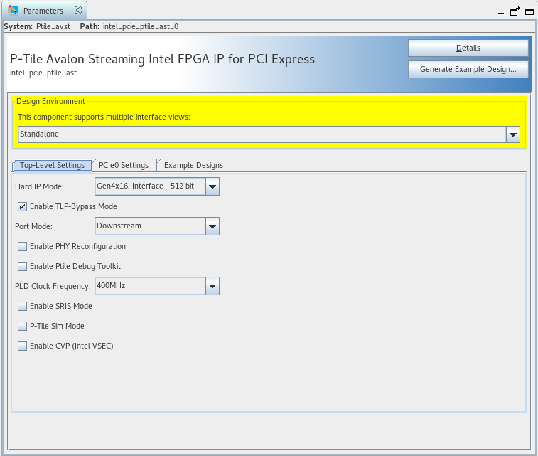 Note: You can enable the TLP Bypass mode in the Top-Level Settings tab of the IP Parameter Editor as shown in the figure below:
