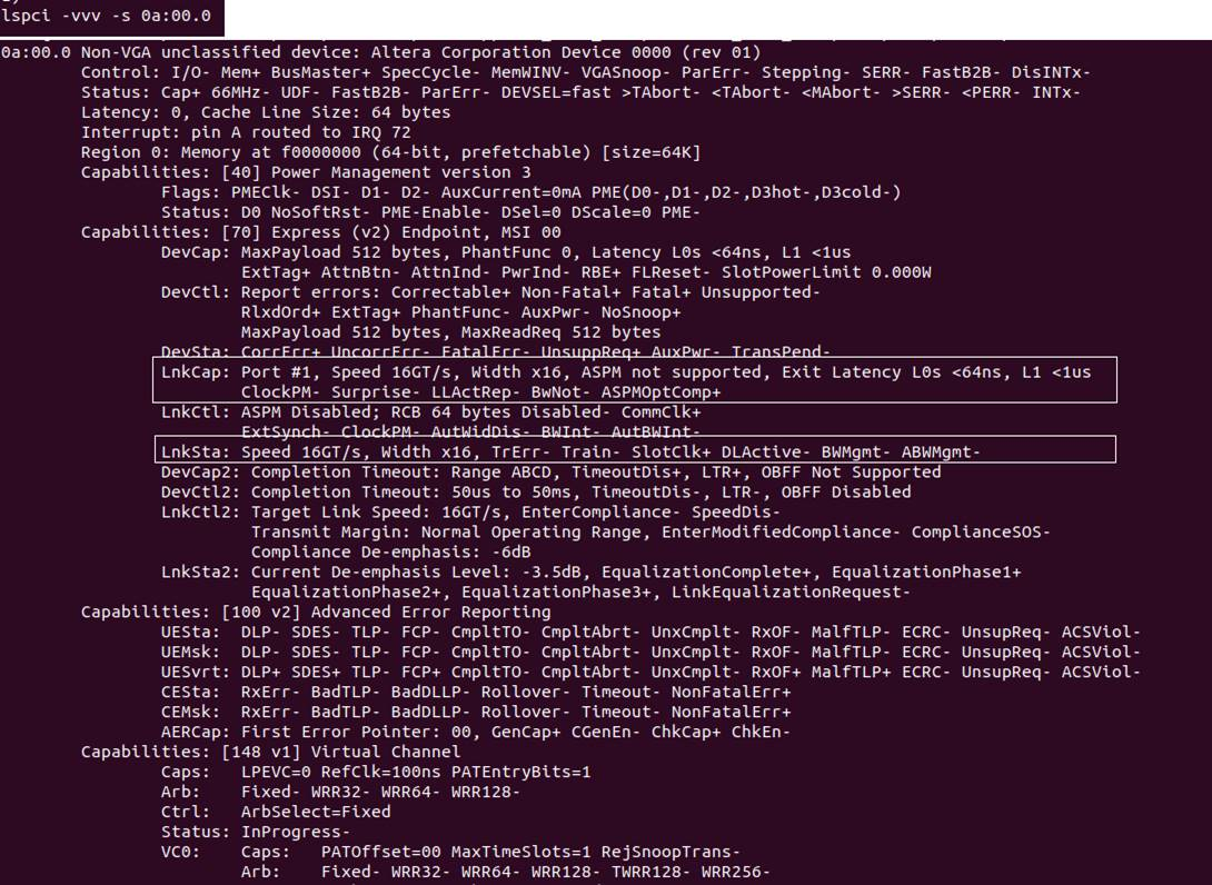 The LnkCap under Capabilities indicates the advertised link speed and width capabilities of the device. The LnkSta under Capabilities indicates the negotiated link speed and width of the device.