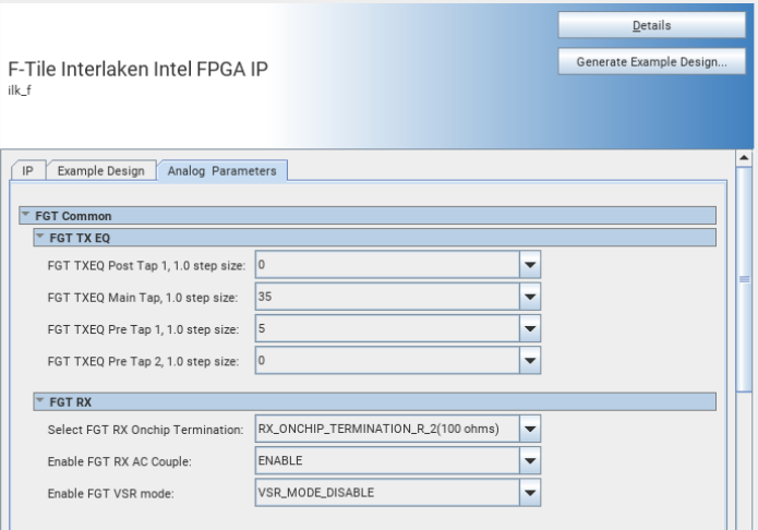 | Select FGT RX Onchip Termination | RX_ONCHIP_TERMINATION_R_2 (100ohms) |