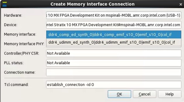 - Click Create Memory Interface Connection to create a connection to the external memory interface.