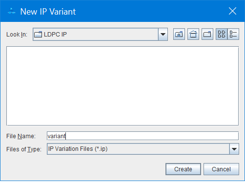 Figure 3. IP Variant File NameThe name is for both the top-level RTL module and the corresponding .ip file.The parameter editor for this IP appears.