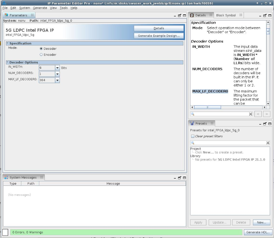 3.1. Generating a 5G LDPC Intel® FPGA IP