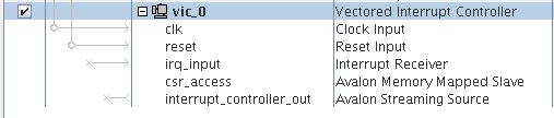 Note: If you have enabled daisy chaining, Platform Designer adds an Avalon® -ST sink, called interrupt_controller_in, to the VIC.