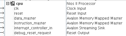 - Click Finish to exit from the Nios® II parameter editor interface . Notice that the processor shows an unconnected interrupt_controller_in Avalon® -ST sink, as shown in the figure below.