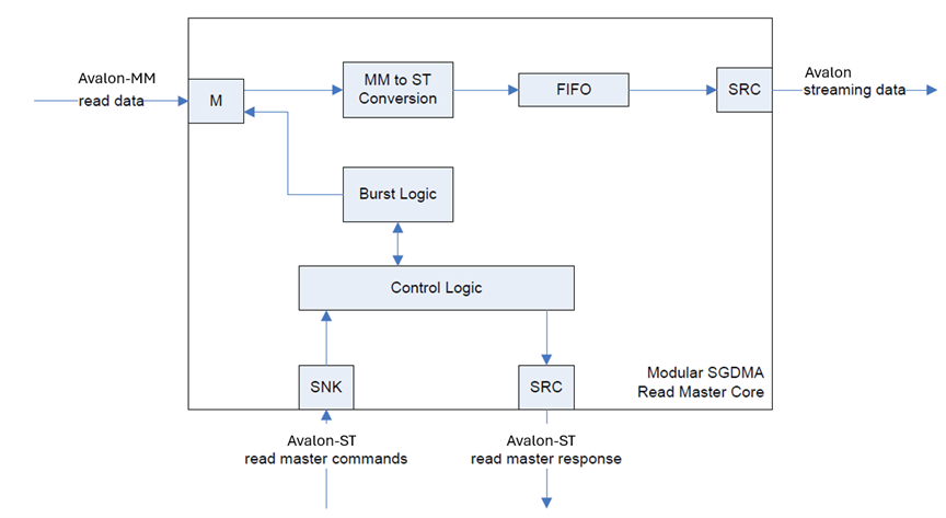 The following figure shows the significant blocks that make up the read master IP.