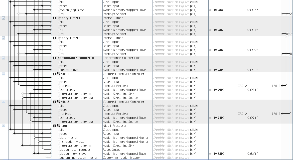 In each example, the software uses timers in conjunction with performance counters to measure the interrupt performance. Each example’s software calculates the performance and sends the results to stdout.