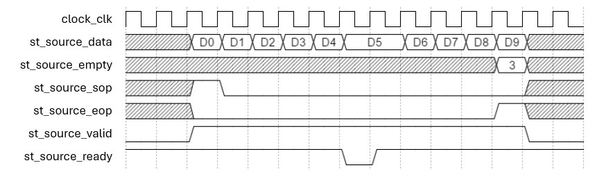 The following figures show the waveform for Avalon® -ST data interfaces for MM-ST & ST-MM configurations.