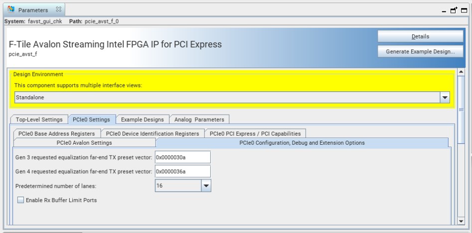 | Enable RX Buffer Limit Ports | True/False | False | When selected, RX buffer limit ports are exported allowing you to control the buffer limits for RX Posted, Non-Posted and CplD packets. Otherwise, the Maximum Buffer Size is used. |
