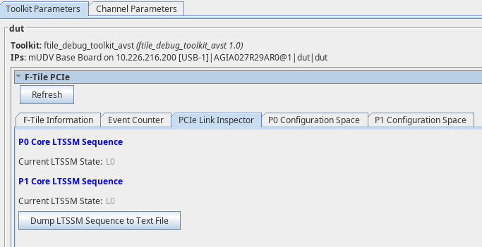 When the Dump LTSSM Sequence to Text File button is initially clicked, a text file (ltssm_sequence_dump_p*.txt) with the LTSSM information is created in the location from where the System Console window is opened. Depending on the PCIe topology, there can be up to four text files. Subsequent LTSSM sequence dumps will append to the respective files.