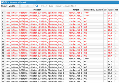 For designs that include the Hard Memory NoC, you can interactively generate a NoC Performance Report in Interface Planner.