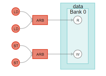 The following images show how the 512x32 bit memory with stallable arbitration for this code sample is structured, as well how the component memory structure is shown in the high-level design report (report.html).