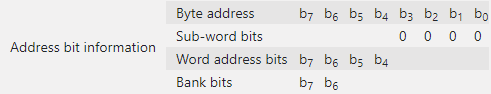 In the Function Memory Viewer (inf the High-Level Design Reports), the Address bit information shows the bank selection bits as b6 and b7, instead of b4 and b5:
