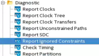 - To find False or Multi-Cycle Paths, click Report Ignored Constraints in the Timing Analyzer Tasks pane.