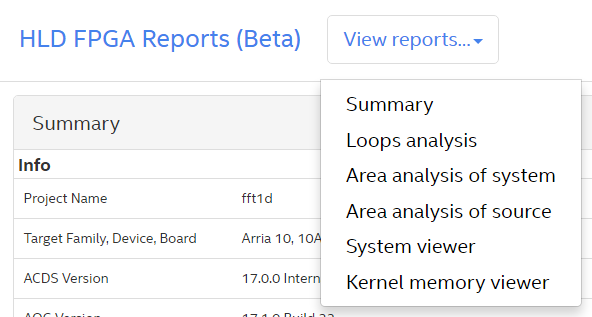 From the View reports pull-down menu, you can select a report to see an analysis of different parts of your kernel design.