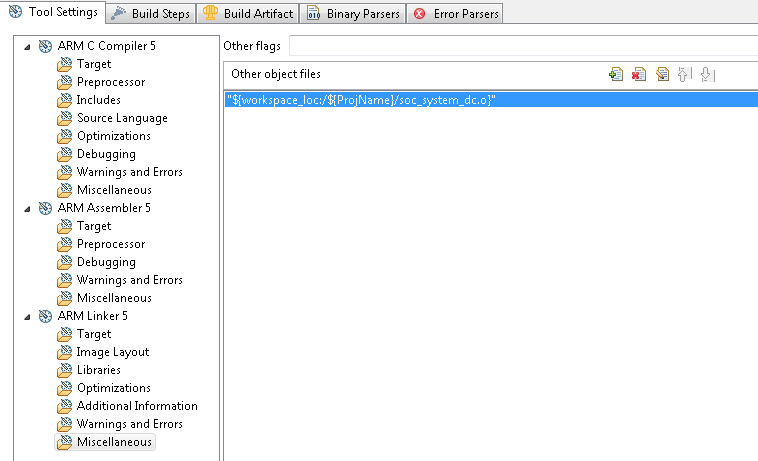 Figure 63. ARM Linker Miscellaneous Settings