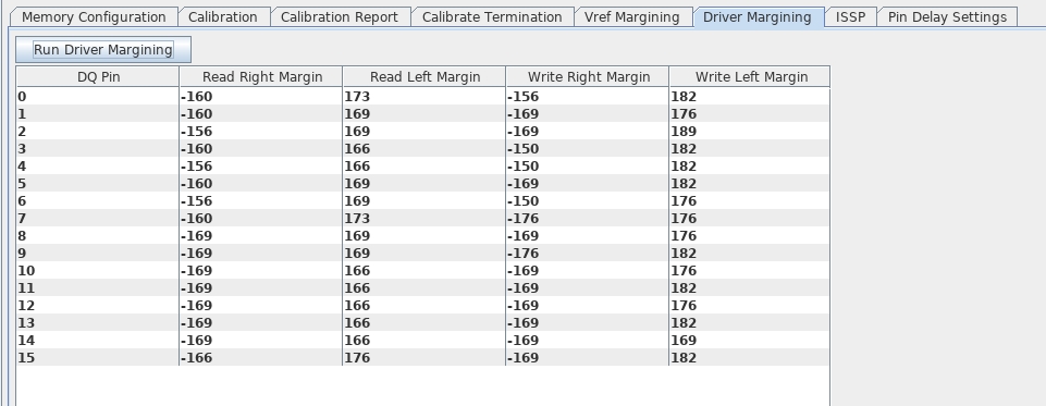 The Driver Margining feature lets you measure margins on your memory interface using a driver with predefined traffic patterns.  Margins measured with this feature are expected to be smaller than margins measured during calibration, because this traffic pattern is longer than those run during calibration, and is intended to stress the interface.