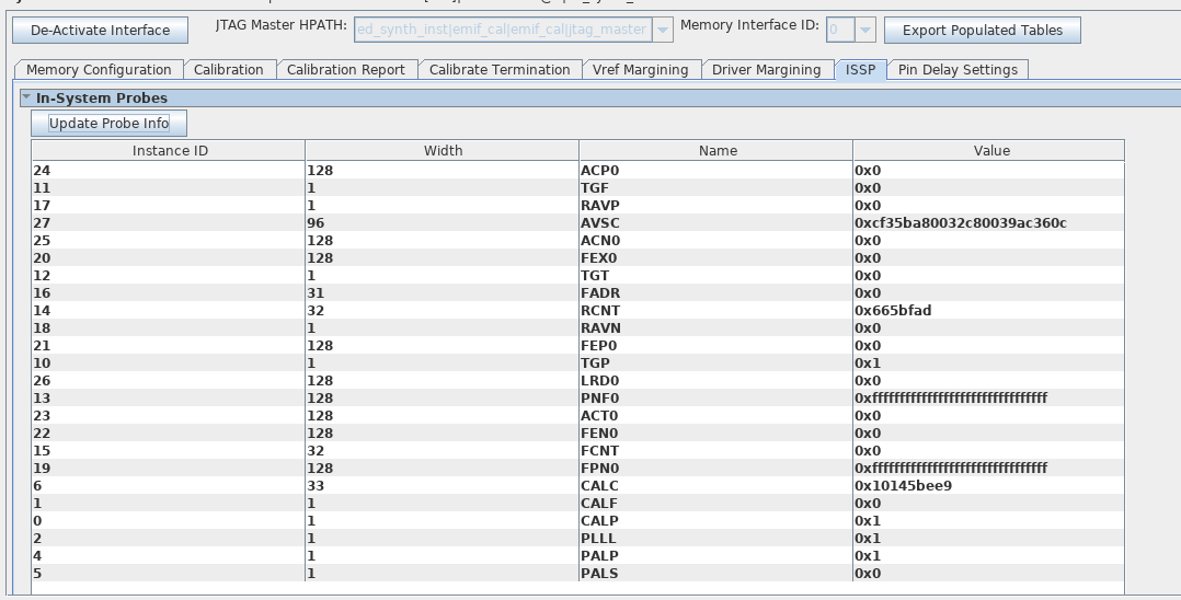 To reread the probe data from the ISSPs in the design, expand the In-System Probes section and click the Update Probe Info button.