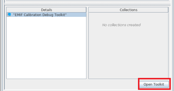 - Select the EMIF Calibration Debug Toolkit, which appears in the Details section, and click Open Toolkit to open the main view of the toolkit.